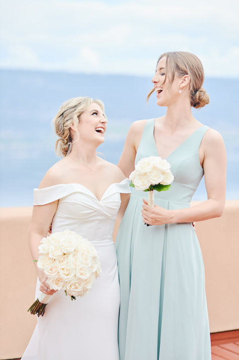 During the wedding planning process as Sunney and I discussed and created the timeline for their wedding day, Sunney mentioned to me that while she didn't want to do a first look with Tyson, she did want to have a first look with her father and brothers so, come the day of their wedding, we picked one of the many beautiful locations that La Casa Mirador has to offer to set up the first look. Standing on the beautiful balcony of the top floor, we had the most gorgeous, panoramic views of the Okanagan in all of it's glory serving as the perfect backdrop for such a heartfelt moment. And man, was that first look something truly special to witness and document for my couple. As Sunney's father and brothers turned around to look at her, you could feel all of the love they shared and the joy that they felt in that moment - it was a magical moment!